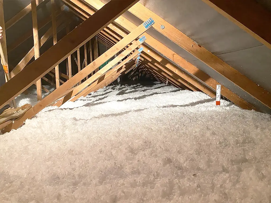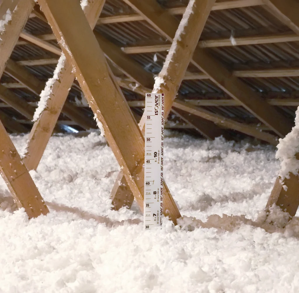 Nous mesurons l’épaisseur réelle de votre isolant dans les combles avec la réglette Isover. Vous voyez immédiatement l’état de votre isolation.