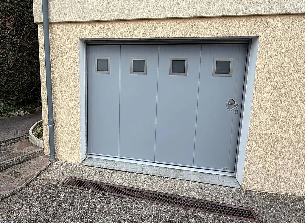 Portes à deux battants, disponibles en bois ou PVC, idéales pour les garages indépendants ou les maisons au style traditionnel.